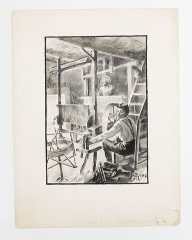 Exemplaire accompagné d'un DESSIN ORIGINAL réalisé par Georges ROUX (1855-1929) pour illustrer cet ouvrage. Il est repris en hors-texte au chapitre XI sous le titre « Le jeune Wesley au rouet ». Format 21,4 x 14,8 cm, lavis sur carte rehaussé de gouache blanche, signé G. Roux. Tampon des Éditions Hetzel avec numéro et référence au crayon. Petite déchirure marginale n'affectant pas le dessin.