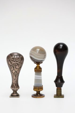Ensemble de trois cachets, l'un en agate à monture en métal doré ...