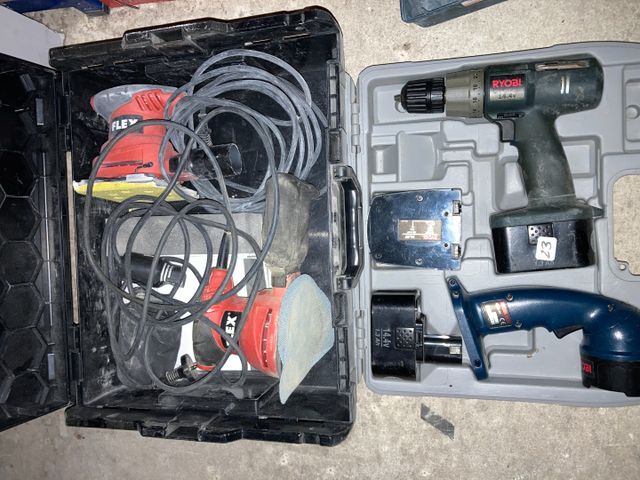 LOT COMPRENANT 2 PONCEUSES FLEX, UNE VISSEUSE ET UNE LAMPE RYOBI