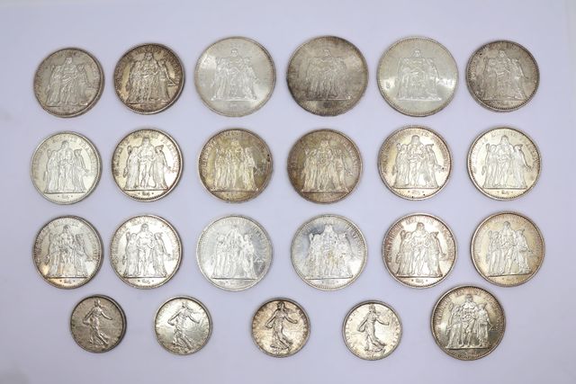 Ensemble de monnaies en argent Hercule et Semeuse 900°/°° et 835...