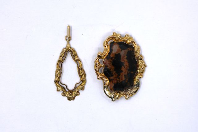 Monture de pendentif et broche retenant une plaque d'agate en or