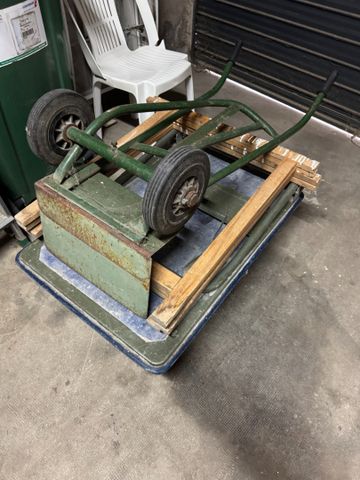 Lot comprenant un escabeau, un diable, un chariot et deux tréteau