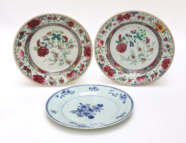 CHINE XVIIIème siècle Suite de trois assiettes circulaires en po...