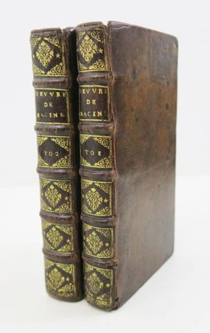 Très rare édition collection collective renfermant les pièces suivantes : La Thébaïde, ou les Frères ennemis, Alexandre le Grand, Andromaque, Britannicus, Les Plaideurs (au tome premier), Bérénice, Bajazet, Mithridate, Iphigénie (au tome second). Avec relié in fine : l'ÉDITION ORIGINALE de PHÈDRE donnée à Paris, par Jean Ribou, en 1677, et placée avec pagination propre ([VI]+74) à la fin du tome II.