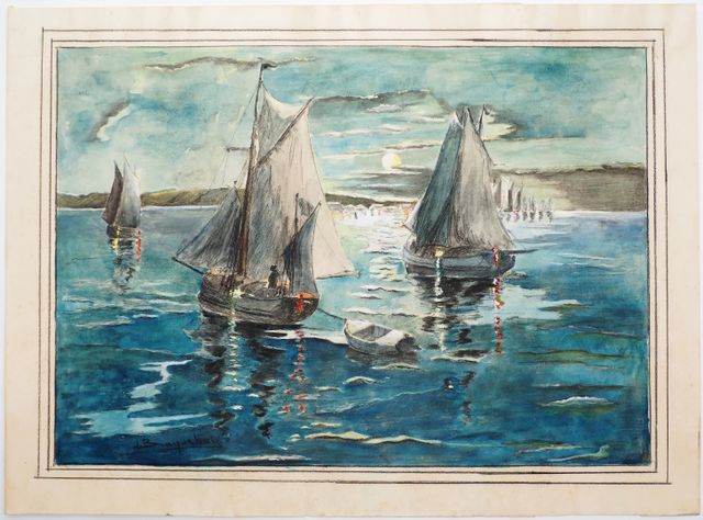 J. BRAQUEHAIS (XXème siècle) Clair de lune, vue prise de la digue...