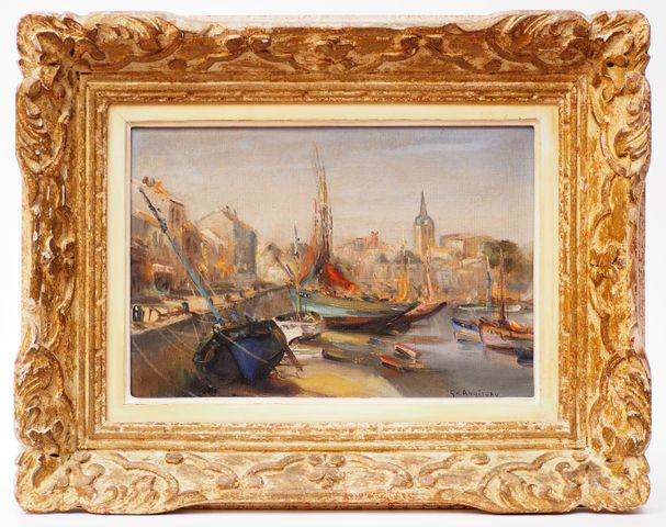 Gabriel AUGIZEAU (1894-1963) Vue de port Huile sur toile signée e...