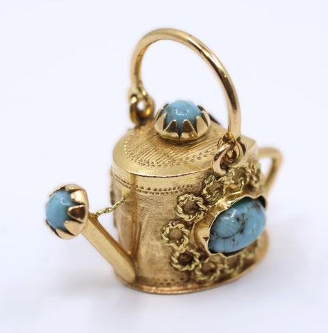 Pendentif en or jaune 750°/°° représentant un arrosoir orné de ca