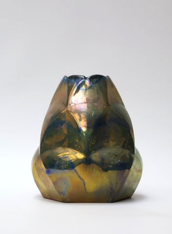 RAMBERVILLERS Vase piriforme à facettes en grès flammé à oxydes ...