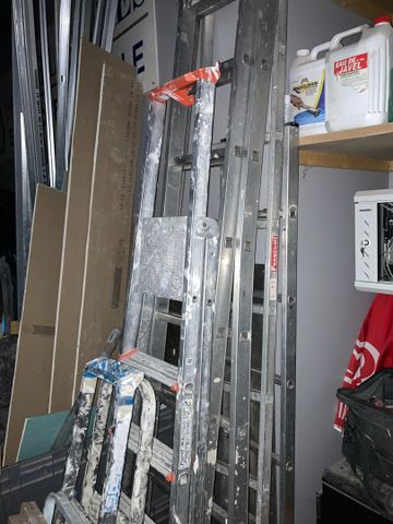 LOT COMPRENANT 1 ECHELLE DOUBLE, 2 ECHELLES, 3 ESCABEAUX