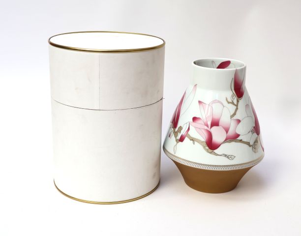 HAVILAND à LIMOGES Vase piriforme à col droit en porcelaine dure...