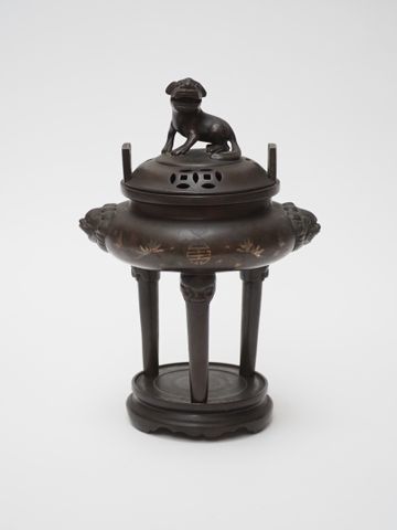 CHINE ou VIETNAM Brûle-parfum couvert en bronze à patine médaille...