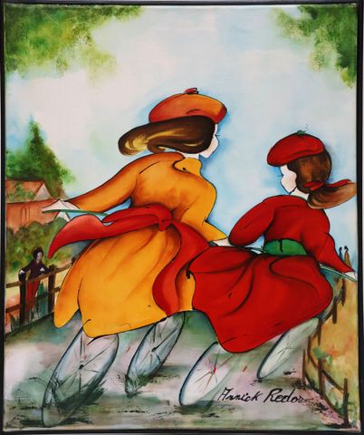 Annick REDOR (1952) Filles aux vélos Huile sur toile signée en ...