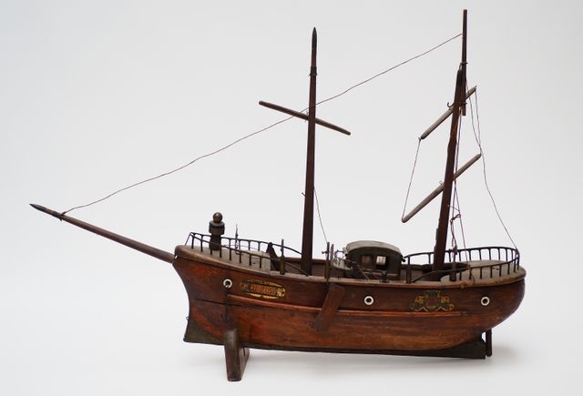 Réunion de deux maquettes en bois et métal comprenant un deux-mât...