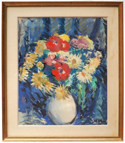 Jeanne KLEIN (1877-1966) Nature morte au bouquet de fleurs Aquare...