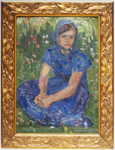 Ecole RUSSE du XXème siècle Portrait de jeune fille à la robe ble...