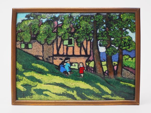 Léon JOUHAUD (1874-1950) Paysage animé Email sur cuivre monogramm...