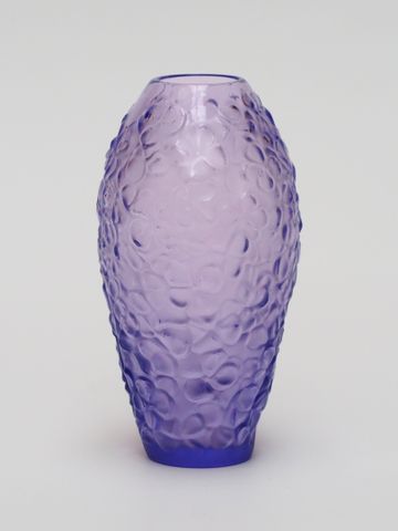 LALIQUE France Vase en cristal teinté violet à décor floral en re...