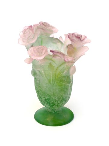 DAUM FRANCE Vase à décor de roses en pâte de cristal rose nuancé ...