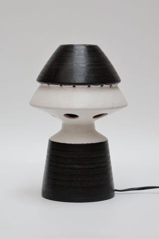 Lampe à poser en céramique émaillée blanche et noire à fût légère...