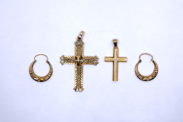 Paire de boucles d'oreille et deux pendentif en forme de croix en