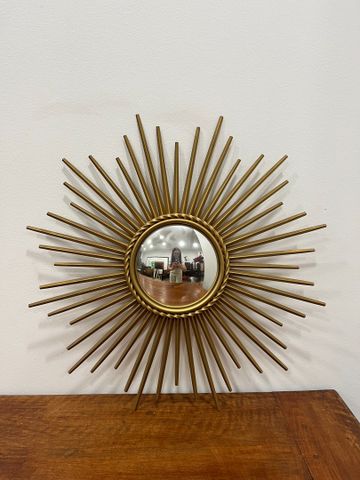 Miroir sorcière de forme soleil en laiton doré L. 51 cm