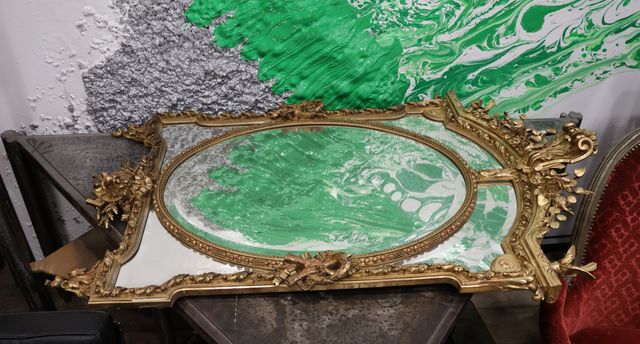 Miroir à parecloses en bois et stuc, sculpté et doré, style Louis...