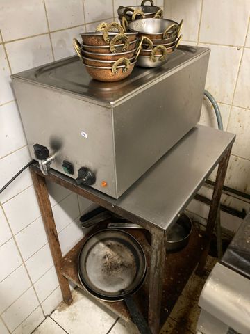LOT COMPRENANT UN BAIN MARIE INOX AVEC CONSOLE INOX , BOUILLOIRE,...