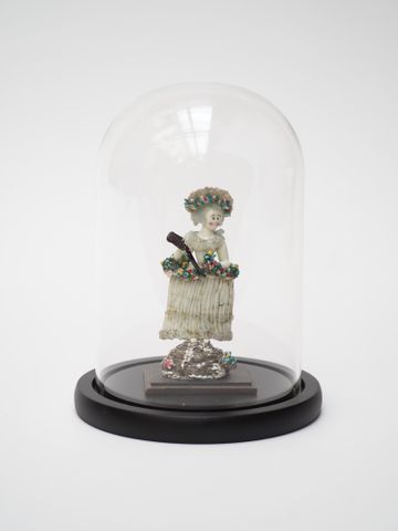 Jeune élégante au chapeau fleuri en verre filé, émaillé de Nevers...