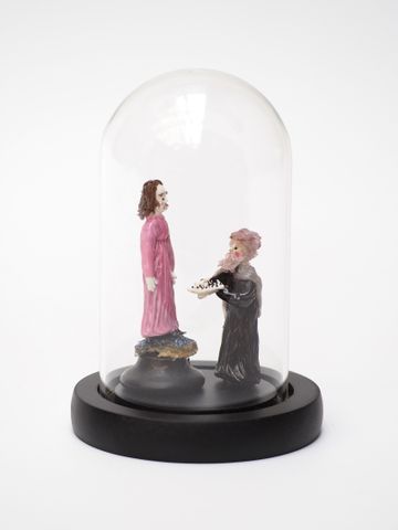 Deux sujets figurant Jésus et le Grand Prêtre en verre filé, émai...