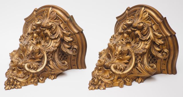 Paire de consoles d'applique en terre cuite à riche décor rocaill...