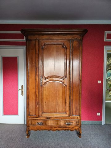 Importante bonnetière à réserves en noyer mouluré ouvrant par un ...