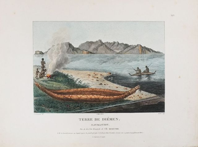 PÉRON (François) & FREYCINET (Louis de). Voyage de découvertes aux terres australes, exécuté par ordre de Sa Majesté l'Empereur et Roi, sur les corvettes le Géographe, le Naturaliste, et la goélette le Casuarina, pendant les années 1800, 1801, 1802, 1803 et 1804 [sous le commandement du capitaine Nicolas Baudin]; publié par décret impérial, sous le ministère de M. de Champagny, et rédigé par M. F. Péron, naturaliste de l'expédition [...] - [T.II] Voyage de découvertes aux terres australes, exécuté sur les corvettes le Géographe, le Naturaliste, et la goélette le Casuarina, pendant les années 1800, 1801, 1802, 1803 et 1804; publié par ordre de son Excellence le Ministre secrétaire d'Etat de l'Intérieur. Rédigé en partie par feu F. Péron, et continué par M.Louis Freycinet, capitaine de frégate [...] commandant du Casuarina pendant l'expédition. Paris, Imprimerie Impériale, 1807-1816.