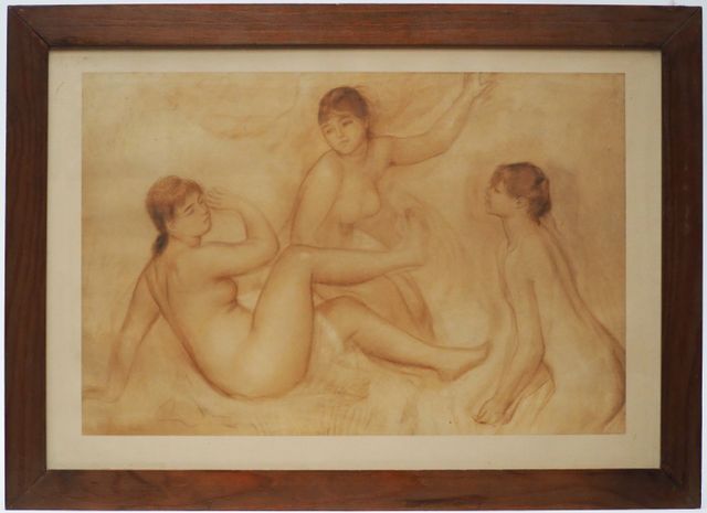 Pierre-Auguste RENOIR (d'après) Trois baigneuses au bord de l'eau...