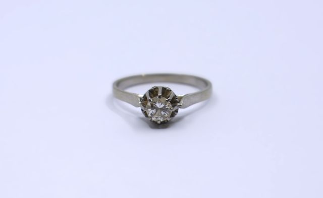Bague solitaire en platine 950°/°° ornée d'un diamant taille mode