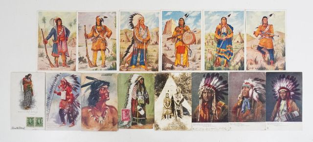 [États-Unis – Amérindiens]. [Ensemble de cartes postales représentant des chefs célèbres]. Nevers, Paris, Fortin, 1951.