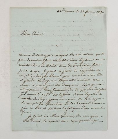 A partir de 1789, les Mulâtres de Saint-Domingue demandèrent l’égalité des droits avec les Blancs. N’ayant rien obtenu, ils commencèrent à se révolter dès février 1790, comme le montre la présente lettre, écrite par le commandant de Saint-Marc (détails sur demande).