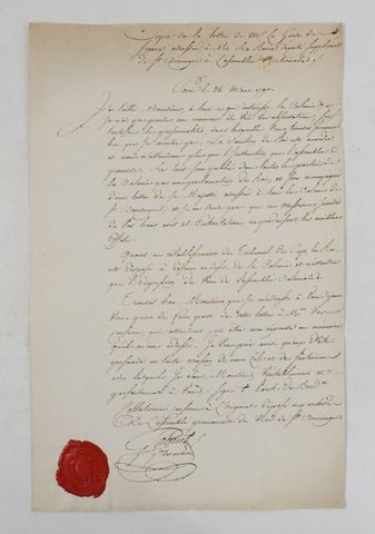 1 p. in-folio (31,6 x 20,4 cm) sur une feuille double ; cachet de cire rouge.