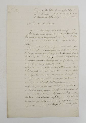 Il annonce ensuite retourner à Saint-Domingue pour le 20 du mois suivant. Dans un long post-scriptum, il évoque un décret de l’Assemblée nationale sur le « pacte de famille », une alliance entre la France et l’Espagne qui semble annoncer une prochaine guerre avec l’Angleterre.