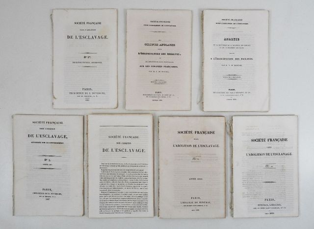 Réunion de 12 fascicules constituant la rare tête de collection du bulletin de la Société française pour l'abolition de l'esclavage créée en décembre 1834.