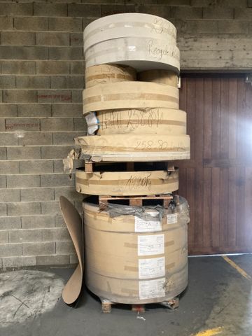 LOT DE BOBINES DE PAPIER (+ DE 150) ET 8 PALETTES DE CARTONS