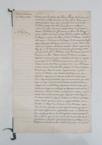 Succession de Jean-Baptiste Robineau. Lettres de rescision. Le Cap, Paris, 1735-[1749]. Manuscrit in-folio (33,3 x 21,4 cm) de (7) pp. ; broché, rubans de soie bleue.