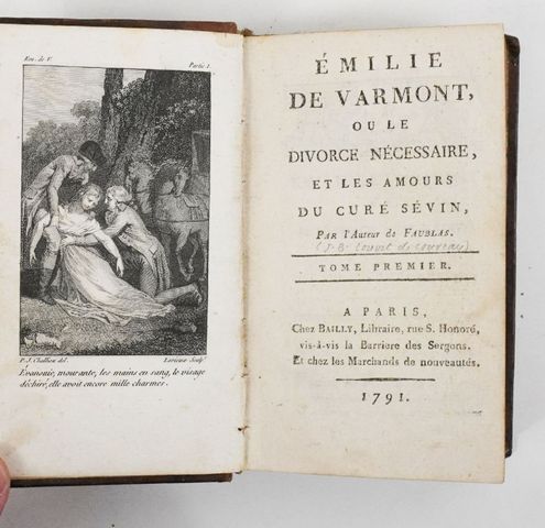 [LOUVET DE COUVRAY (Jean Baptiste)]. Emilie de Varmont, ou le Divorce nécessaire et les amours du curé Sévin, par l'Auteur de Faublas. Paris, Bailly, 1791.
