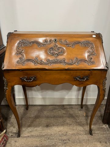 Bureau de pente de style Louis XV en bois mouluré et sculpté, ouv...