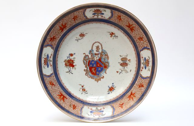 Plat circulaire en porcelaine dure à décor bleu, rouge et or dit ...