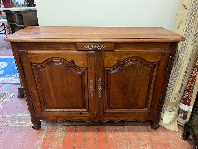 Buffet bas en bois naturel mouluré ouvrant par deux vantaux H. 9...
