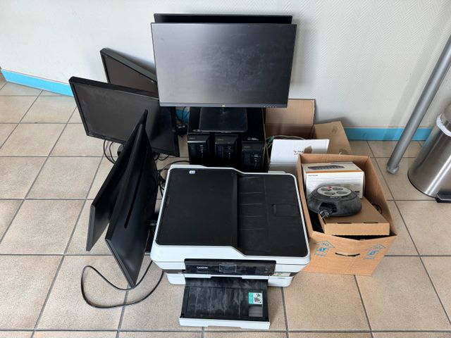 Lot de matériel informatique comprenant 6 écrans, 3 unités centra