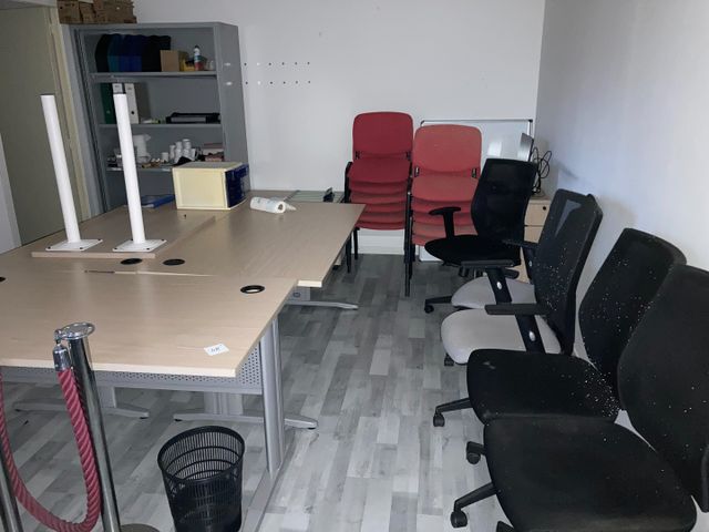 LOT DE MOBILIER DE BUREAU COMPRENANT 3 TABLES, 1 ARMOIRE, 3 CAISS...