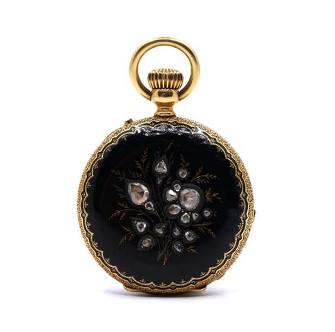 Montre de gousset à double boitier en or jaune 750°/°° et email n