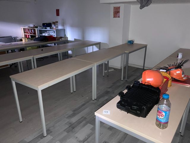 LOT DE MOBILIER DE BUREAU COMPRENANT 11 TABLES, 1 BUREAU, 2 MEUBL...