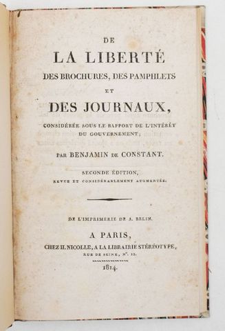 CONSTANT (Benjamin). De la liberté des brochures, des pamphlets e...